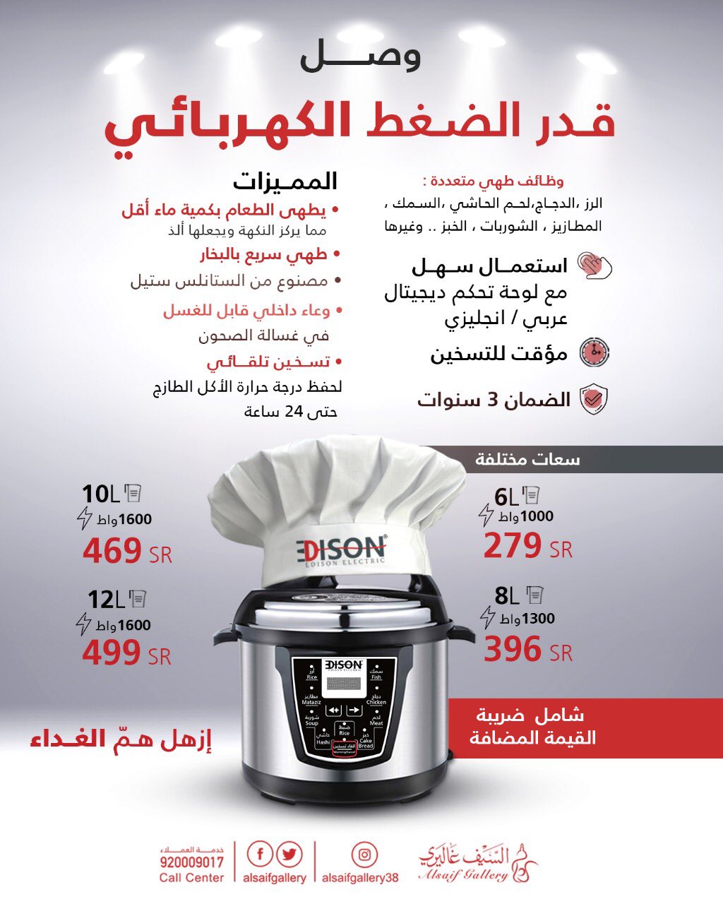 ا لـ سـ يـ ف غـ ا لـ يـ ر ي Twitterissa متوفر الآن في أغلب فروعنا قدر الضغط الكهربائي من أديسون بأحجام متعددة تتناسب مع احتياجاتكم المختلفة وبأفضل المواصفات والوظائف مع
